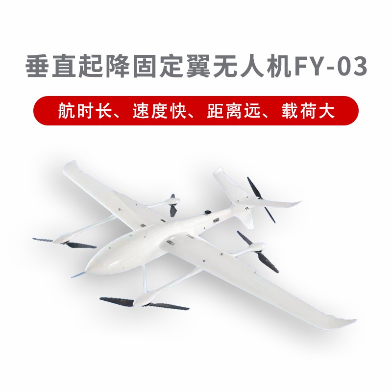 FY-03型采用固定翼与多旋翼相结合的复合翼总体布局,既具备固定翼无人机续航时间长、速度快、飞行距离远的特性,又拥有旋翼无人机垂直起降的功能。垂直起降模式显著增强了该无人机平台的环境适应能力,使其能够在山区、丘陵、丛林等复杂地形以及建筑物密集的区域顺利开展作业,极大地拓展了无人机的应用范畴,是工业级无人机的理想之选。